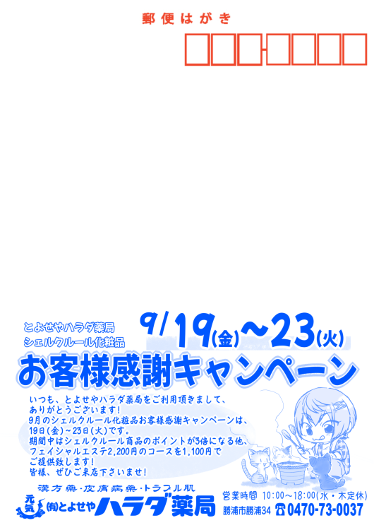 期間中は、シェルクルール商品ご購入時にとよせやハラダ薬局友の会カードのポイントが3倍になる他、フェイシャルエステ¥2,200のコースを¥1,100でお受けいただけます!✨️