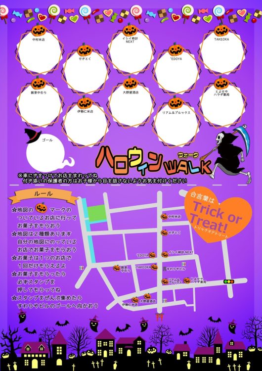 仮装して商店街のお店をまわってお菓子をたくさんもらっちゃおう🍬